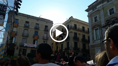 Recorrí las Ramblas, hasta la C/Ferran, para subir a la Plaça Sant Jaume ( Plaza San Jaume). Llegado arriba pude ver los bailes tradicionales de varios lugares, grupos muy participativos. Dos horas más tarde me plante en la C/ Ferran para ver llegar